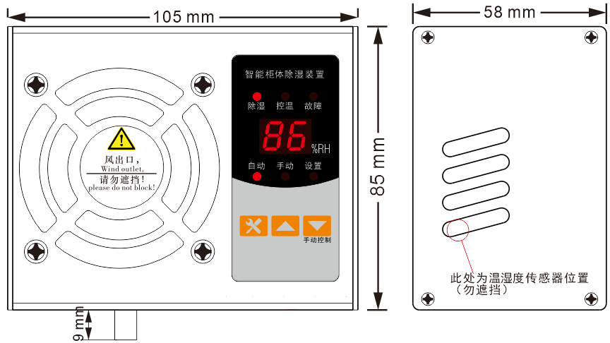 2、自動運行與手動除濕功能切換、溫度啟動值和除濕啟動值可調;